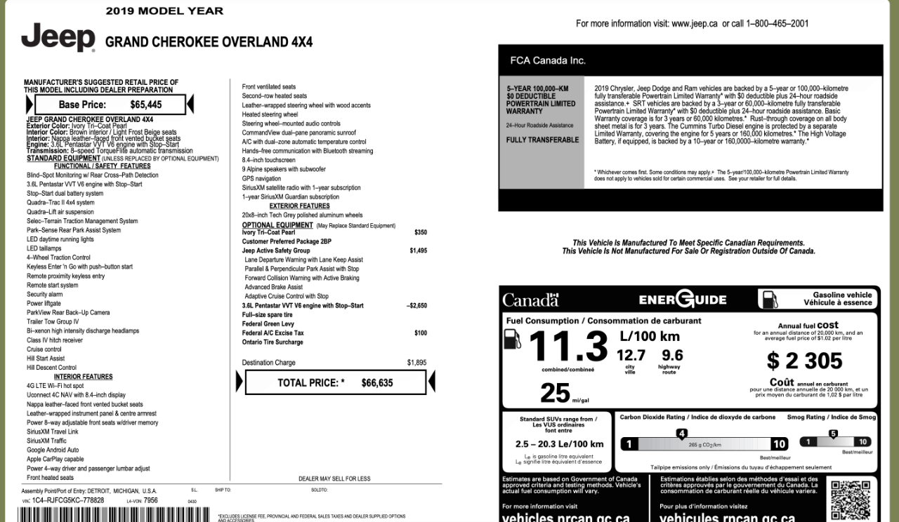 2019 Jeep Grand Cherokee Overland 4WD