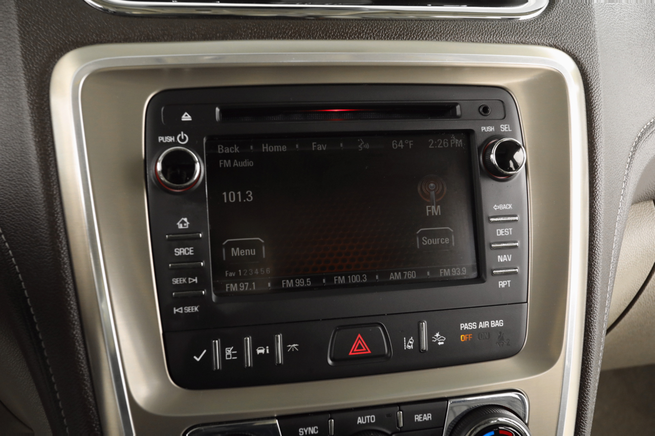 Get ready to cruise in style and comfort with this sleek 2014 GMC Acadia! With its pristine white exterior and spacious interior, this vehicle is perfect for family road trips or daily commutes. The carfax report is available, giving you peace of mind about the vehicle's history. Luxurious power seats provide ultimate comfort, while the air conditioning keeps you cool on hot summer days. Whether you're running errands or heading out on a long drive, the Bluetooth connectivity allows you to jam out to your favorite tunes hands-free. And don't worry about getting lost - the navigation system has got you covered. Plus, the backup camera makes parking a breeze. With abundant space for passengers and cargo in the 3rd row seating, this Acadia is ideal for all your adventures. So buckle up, hit the road, and enjoy the ride in this feature-packed SUV!