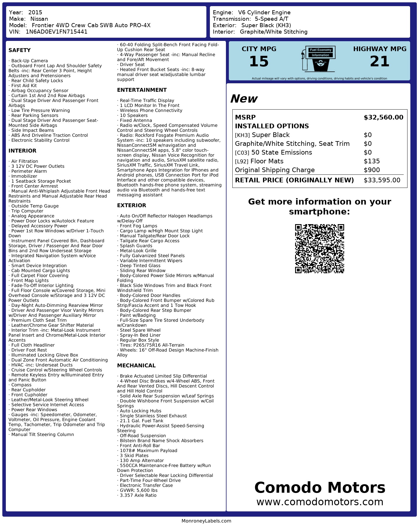 2015 Nissan Frontier Pro 4X Crew Cab 4WD