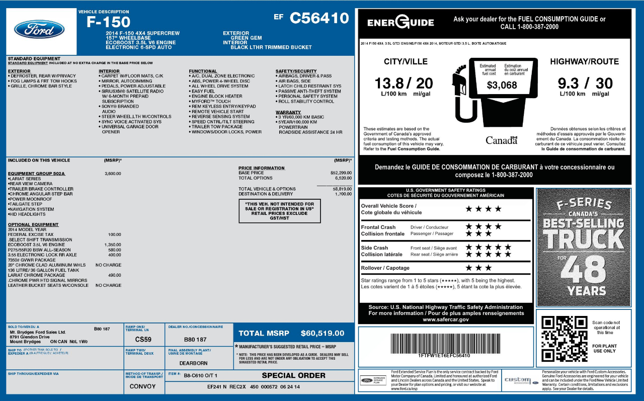 Whether you're hauling work equipment or heading out for a weekend adventure, this F150 has you covered with a trailer brake, trailer hitch, and towing package. Enjoy the open air with the sunroof, while staying comfortable with the dual-zone air conditioning. Safety is a top priority with dual front airbags, side airbags, and rear head airbags.